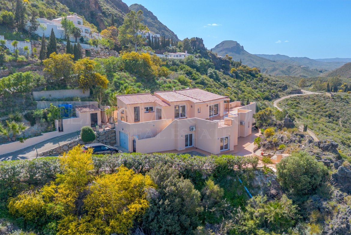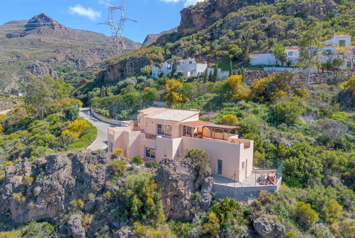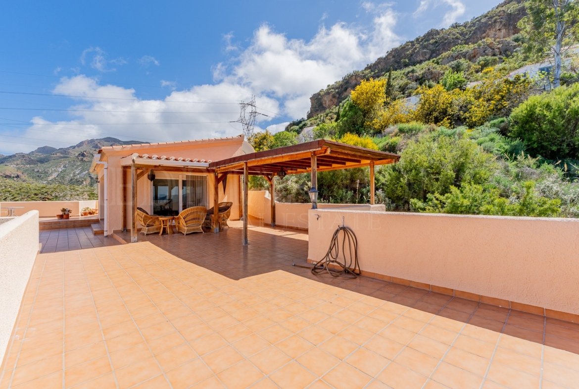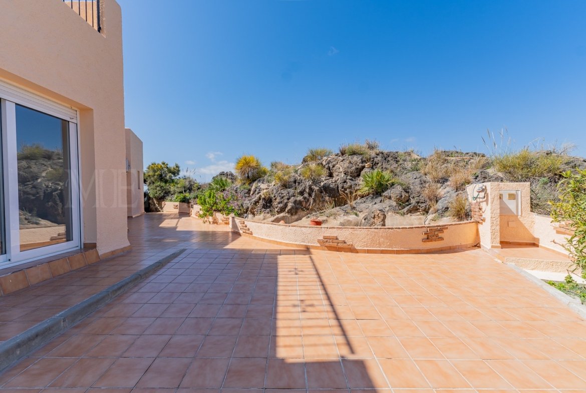 Enclavada en las colinas de Sierra Cabrera, esta villa rural independiente ofrece espectaculares vistas al campo y al mar distante. La propiedad cuenta con 3/4 dormitorios, 3 baños y medio, garaje y numerosas terrazas con impresionantes vistas panoramicas. Con una superficie de 180 m² distribuidos en dos plantas, la villa se encuentra en una parcela privada de 2500 m².