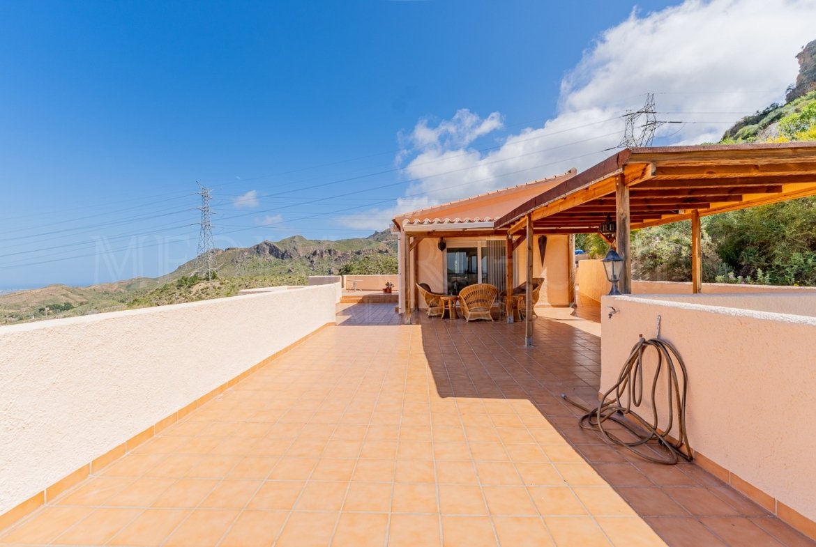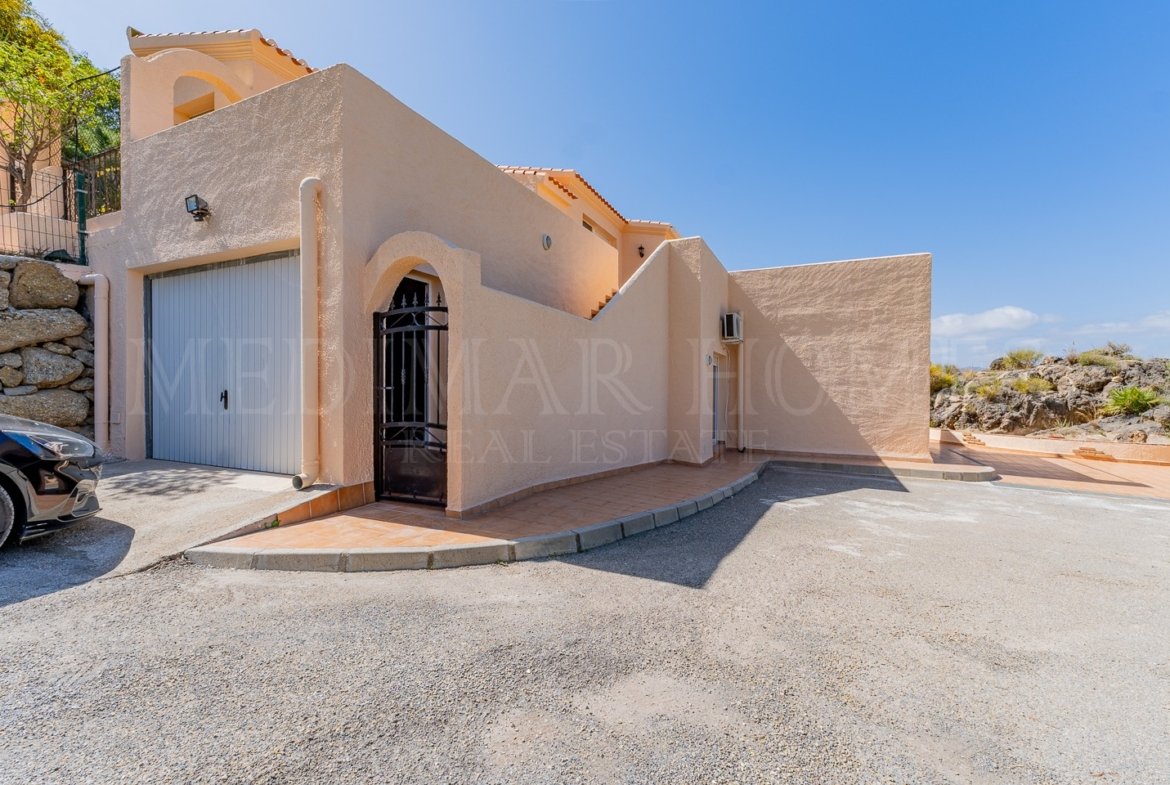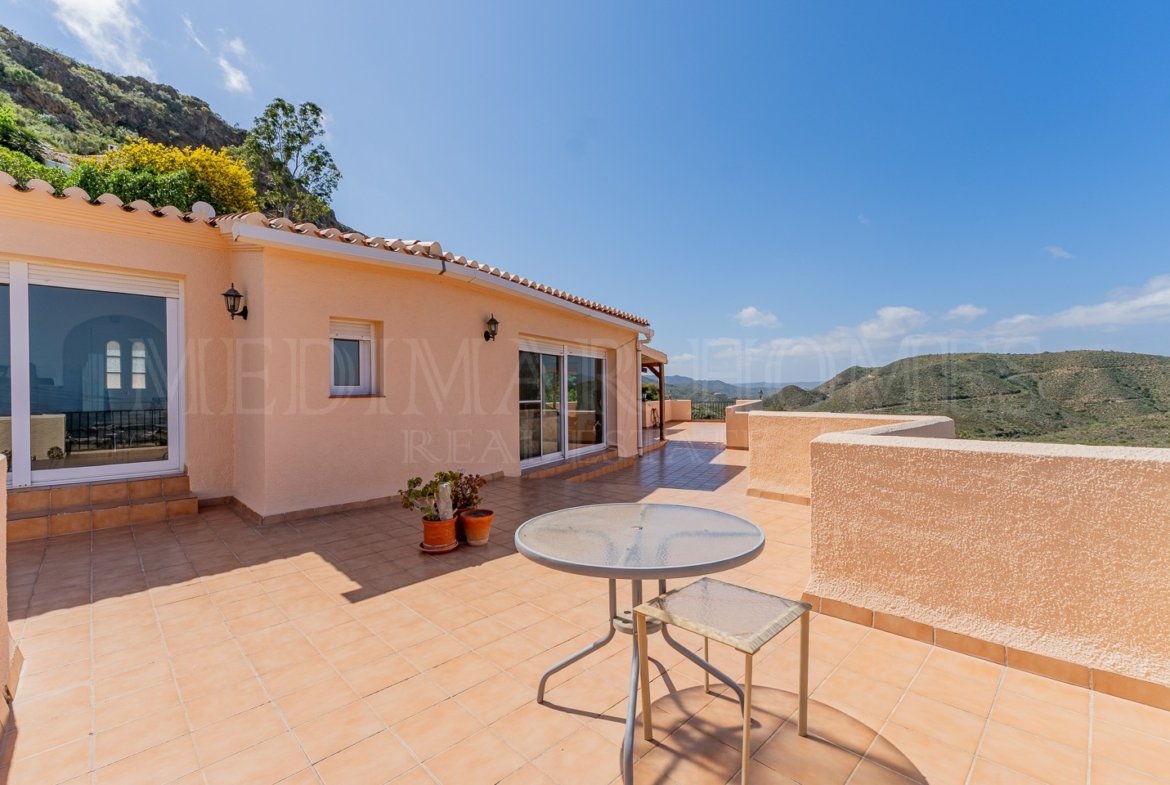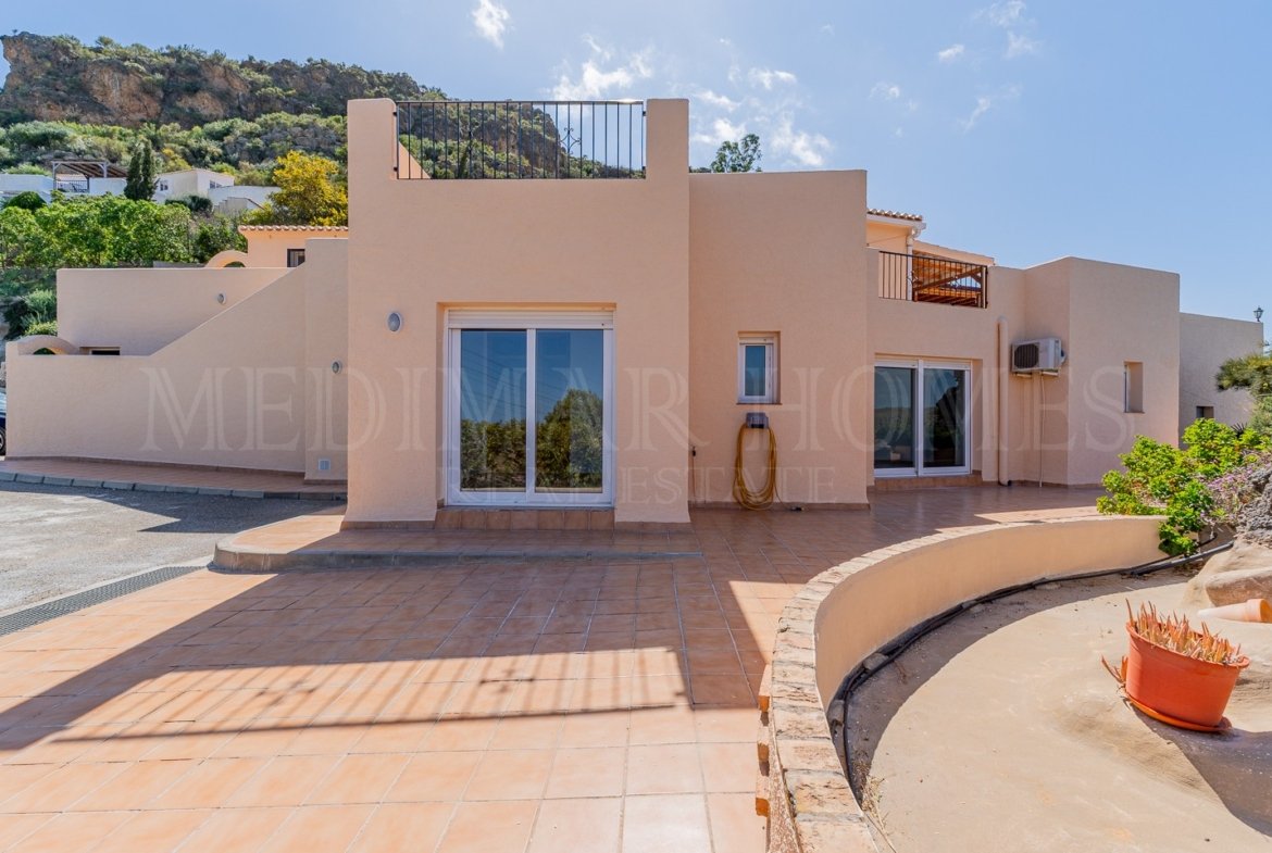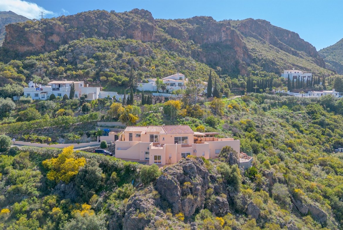 Enclavada en las colinas de Sierra Cabrera, esta villa rural independiente ofrece espectaculares vistas al campo y al mar distante. La propiedad cuenta con 3/4 dormitorios, 3 baños y medio, garaje y numerosas terrazas con impresionantes vistas panoramicas. Con una superficie de 180 m² distribuidos en dos plantas, la villa se encuentra en una parcela privada de 2500 m².
