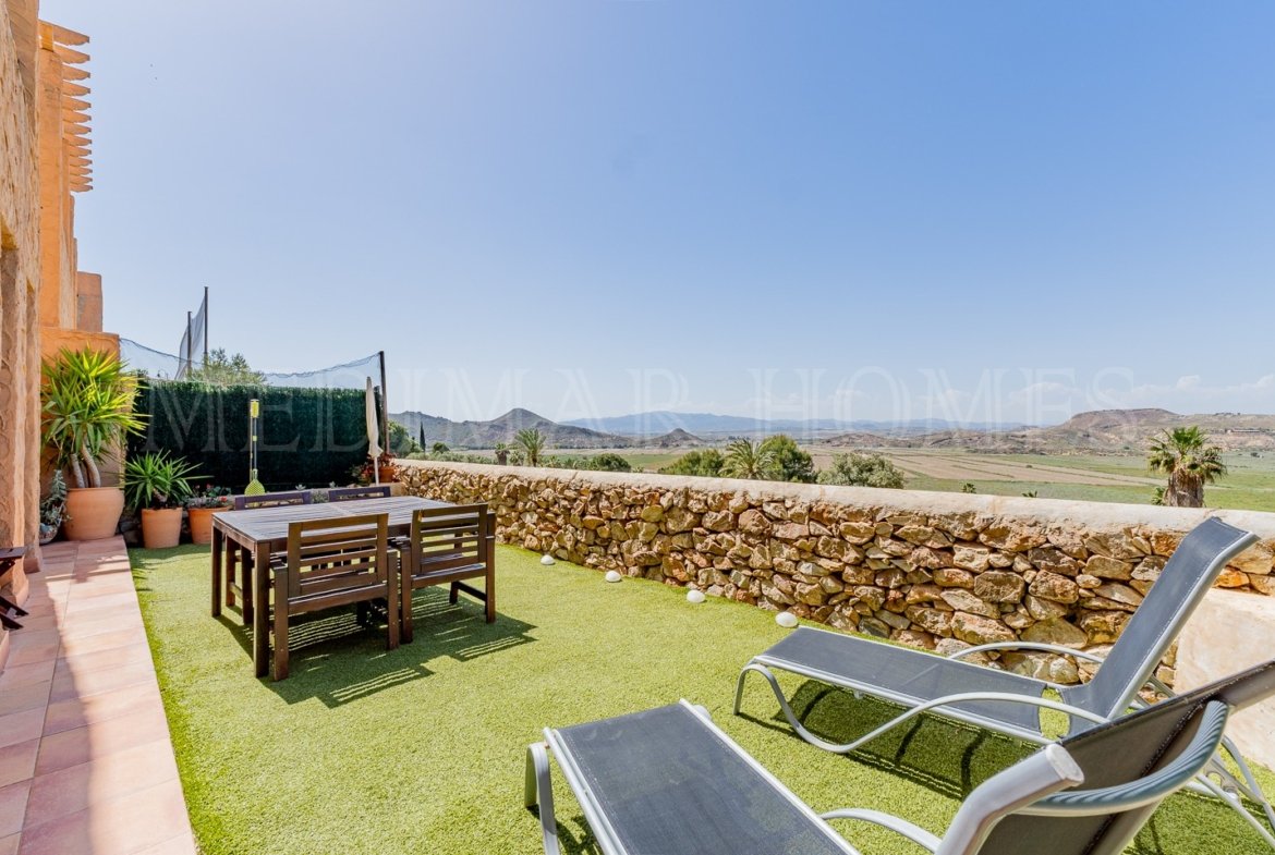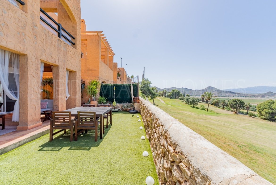 Bienvenido a este precioso apartamento en planta baja de 2 dormitorios y 1,5 baños, situado en la prestigiosa urbanización Terrazas del Golf de Mojácar Playa. La comunidad cuenta con piscina comunitaria, pista de pádel, parque infantil, ascensor con acceso a todas las plantas y vistas al campo de golf.
