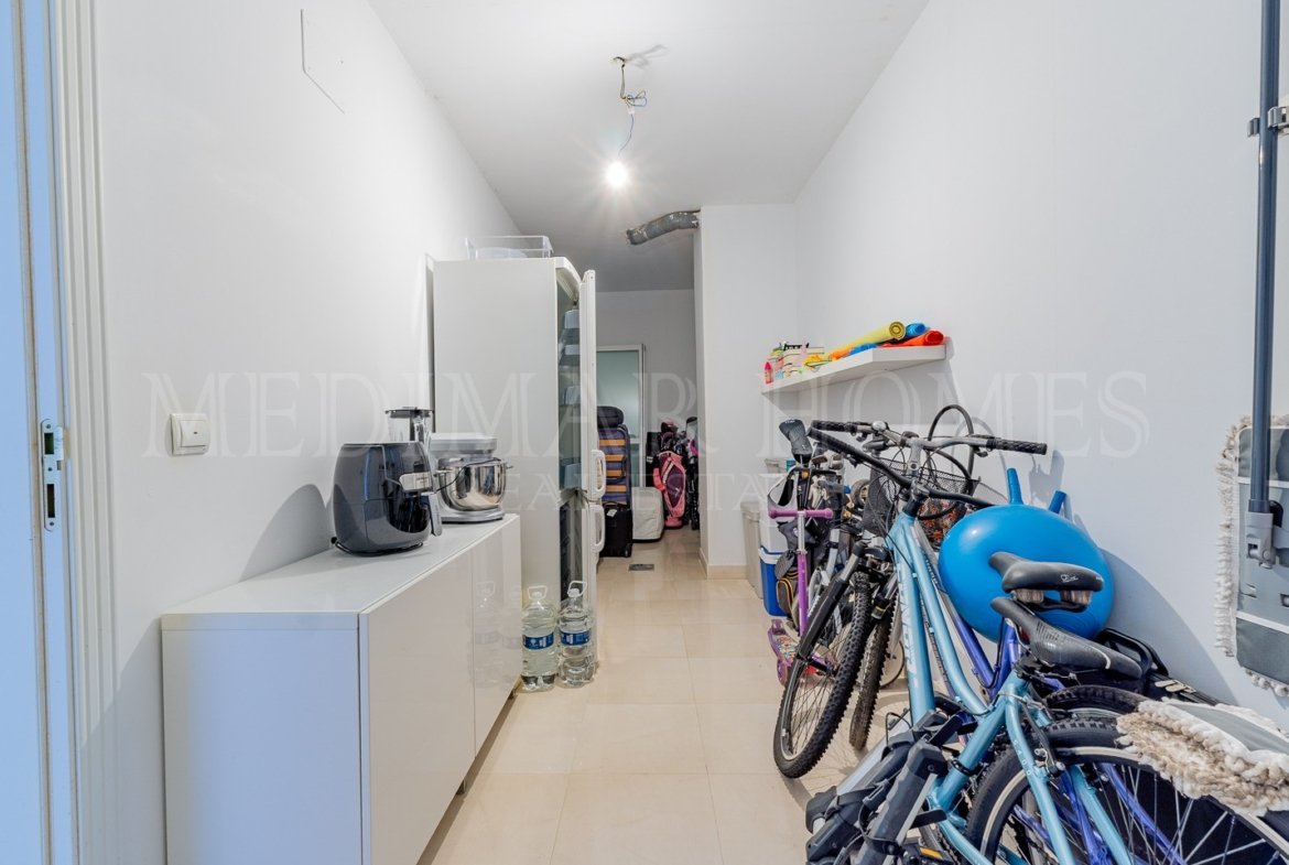 Justo enfrente del apartamento hay un trastero muy espacioso que ofrece una gran cantidad de espacio de almacenamiento adicional. Muchos propietarios optan por instalar allí sus lavadoras, liberando así un valioso espacio en la cocina.