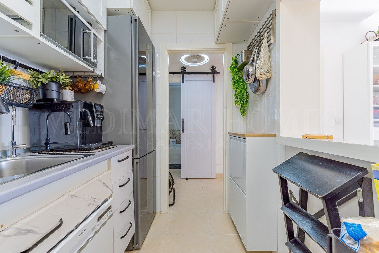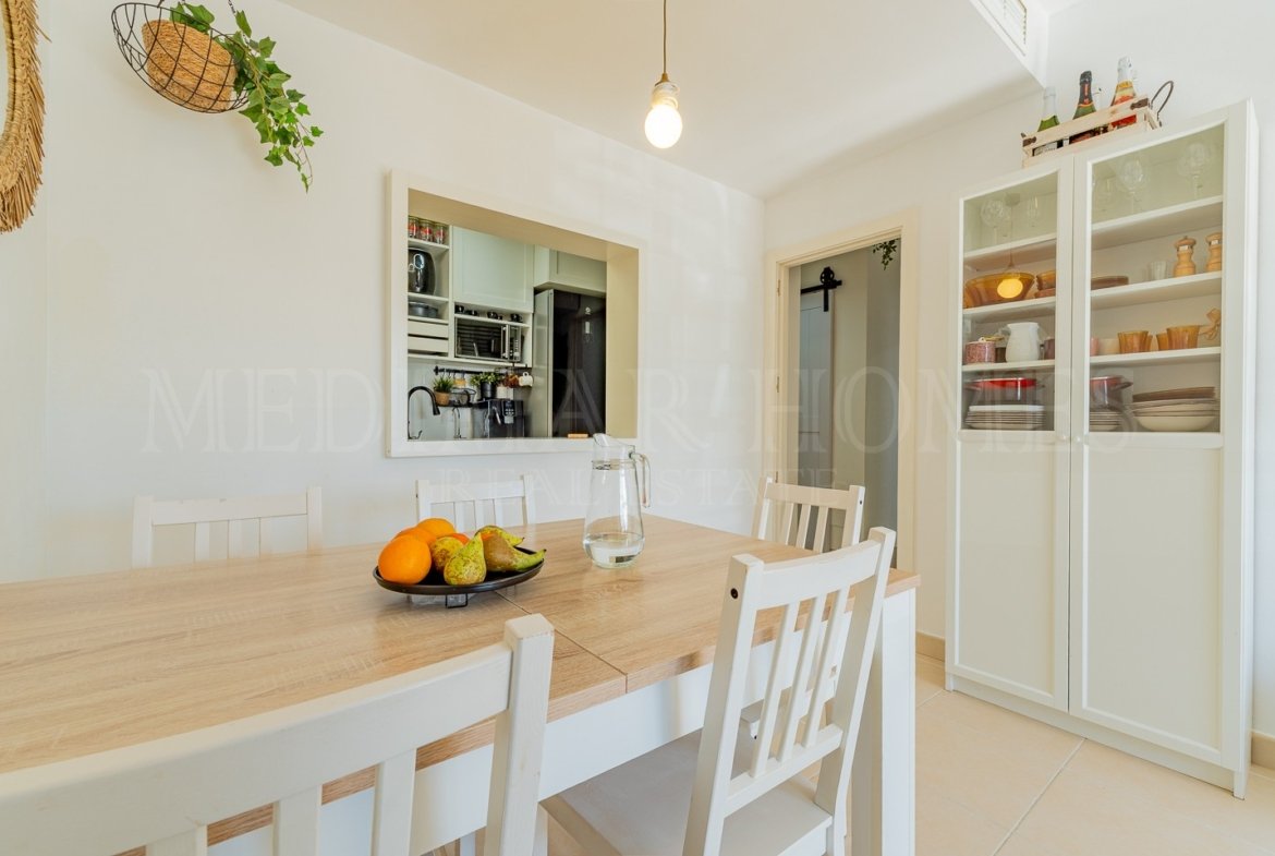 Continuing through the hallway we’ll find to our right a bright and comfortable living/dining room. This well-proportioned space benefits from plenty of natural light and provides direct access to a private south-west facing terrace, offering a pleasant spot to relax and enjoy the surroundings.