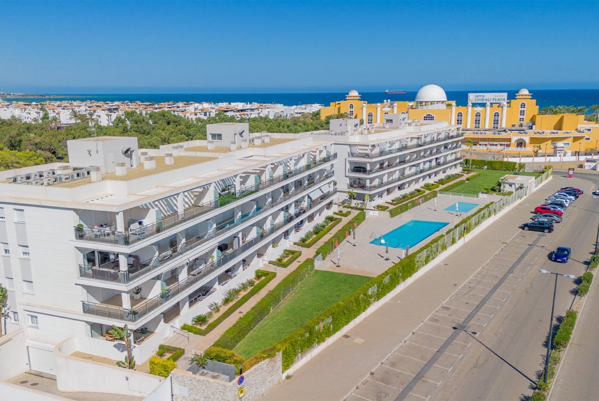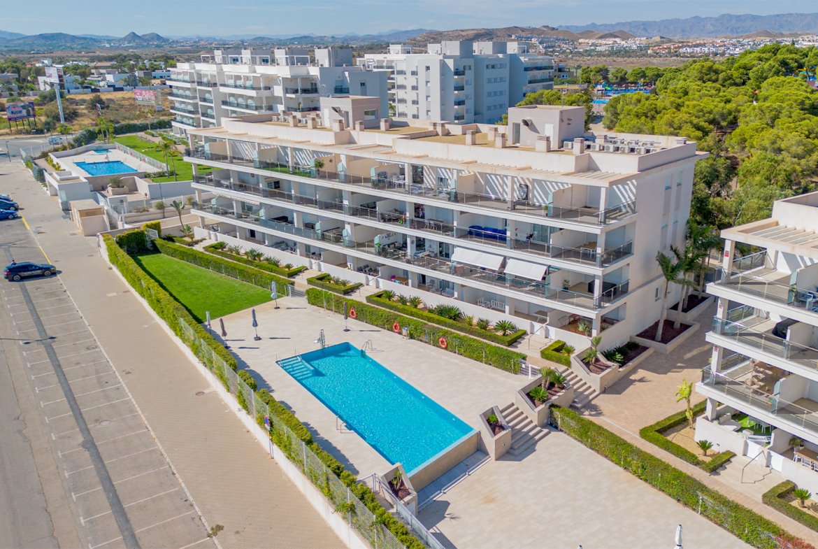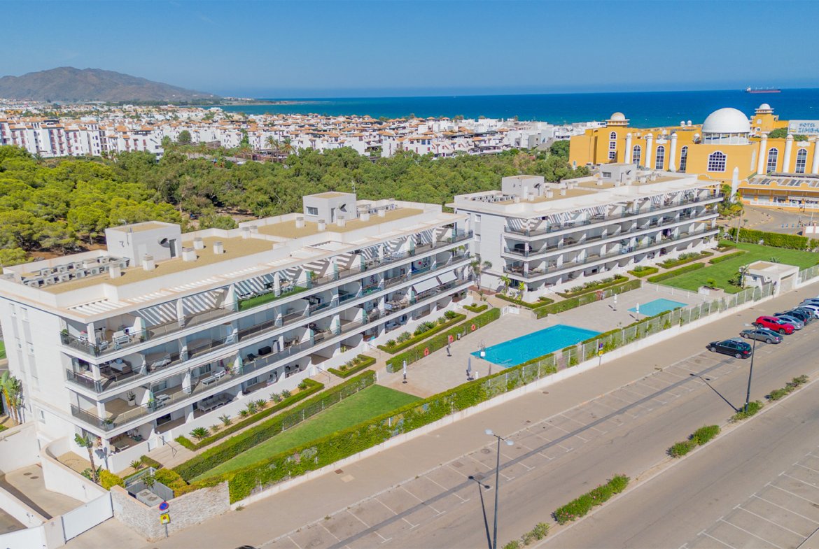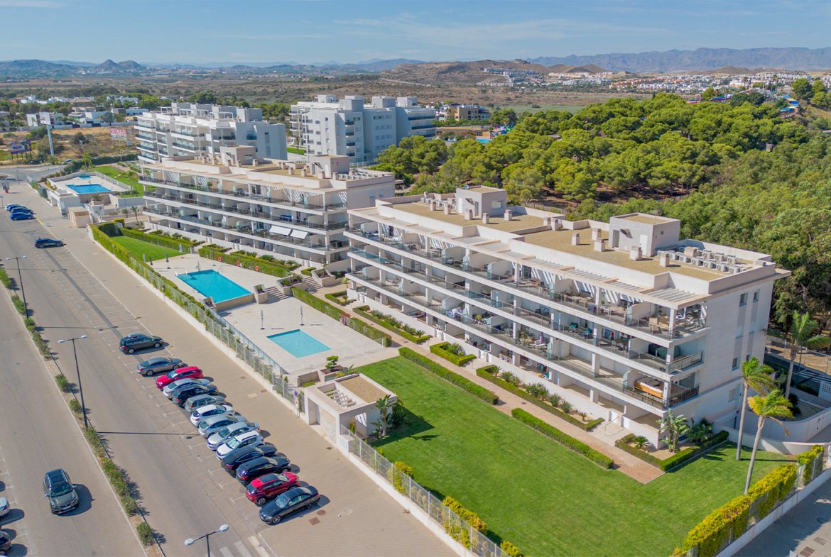 This modern 2-bedroom, 2-bathroom first-floor apartment is located just 350 metres from the beautiful El Playazo beach of Vera Playa, within the sought-after Magna Vera development. Completed in 2020, the property is presented to perfection and offers a private garage space, storeroom, a very generous 27m² terrace, and access to excellent communal facilities.