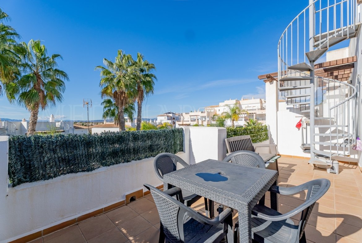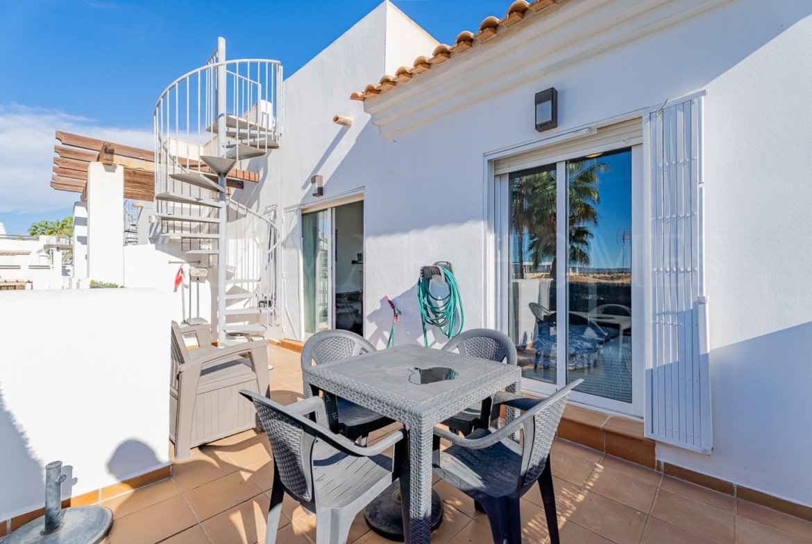 Located on the Don Julian urbanization, this beautifully presented first-floor 2-bedroom, 2-bathroom apartment measuring 68m2 offers a bright living space, a private south-facing terrace, private roof terrace, allocated parking and access to a communal swimming pool.